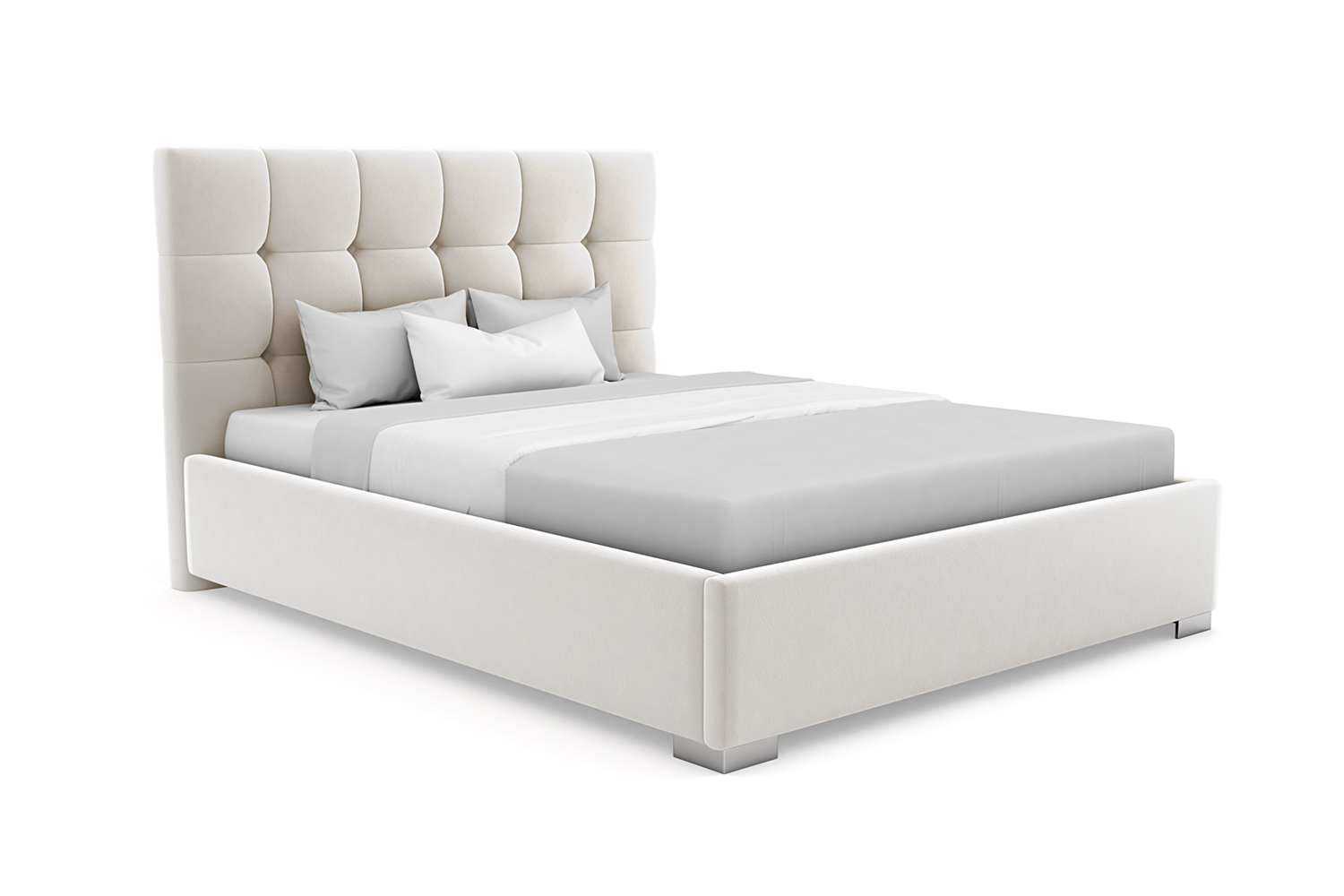 Кровать Агата проста и изыскана. Представьте себе идеальное утро, когда вы просыпаетесь в мягких объятиях удобной кровати. Нежная текстура велюра наполнит комнату теплом. У кровати очень массивное изголовье, украшенное утяжками
