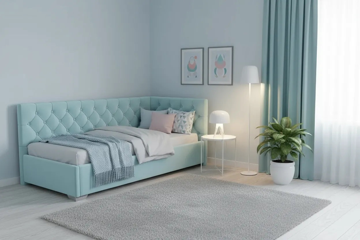 Мягкая угловая кровать Лея с каретной утяжкой — это настоящее произведение искусства для детской! Богато украшенная спинка и элегантные детали превращают комнату вашего ребенка в сказочный дворец. Такая кровать не только создаёт ощущение комфорта и безопасности, но и вдохновляет на сказочные приключения и мечты. Представьте, как Ваш ребенок будет засыпать под мягкий шепот стёганых узоров, погружаясь в самые волшебные сны!