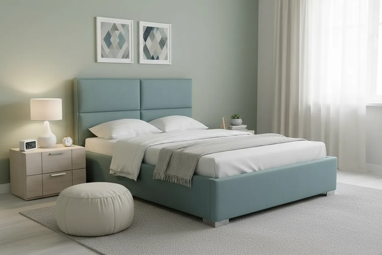 Задняя спинка изголовья выполнена в технической ткани (черной)