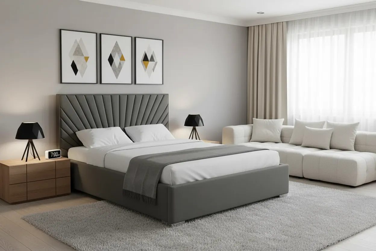 Мягкая кровать с диагональными полосами — это будто уютное прикосновение к современному стилю. Представляете, как приятно улечься на такую поверхность после долгого дня? Диагональные полосы добавляют динамики и изысканности, делая кровать не просто мебелью, а центром комфорта и дизайна.