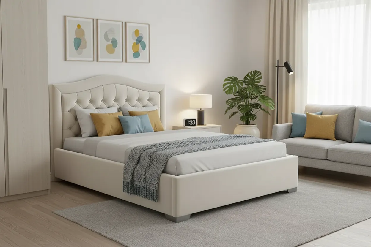 Классическая мягкая кровать Эстела с каретной утяжкой и закругленной спинкой — это настоящее олицетворение элегантности и комфорта. Каждая деталь продумана до мелочей. Каретная утяжка добавляет нотки винтажной изысканности, а закругленная спинка создает ощущение уюта и защищенности. Кровать Эстела превращает сон в произведение искусства, напоминая о классике и вечных ценностях красоты и гармонии.