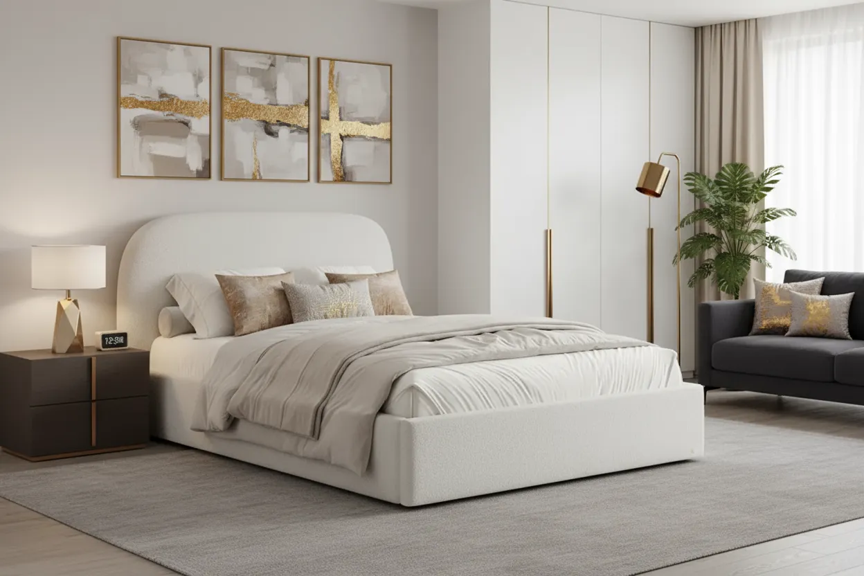 Лёгкий и воздушный элемент интерьера спальни ждет вас! Эта модель идеально подходит для создания уютной атмосферы и добавления стильного штриха в ваши проекты. Она словно облачко, приглашает погрузиться в мир комфорта и элегантности.