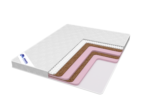Матрас для детской кровати. В его составе используется чередование слоев пены и кокосовой койры. С одной стороны используется пена с массажным эффектом - средняя степень жесткости, с другой - кокосовая койра, более жесткая сторона. Ткань на чехол можно выбрать: микрофибра или трикотаж со стежкой. Беспружинные матрасы чаще выбирают для детских кроватей, ведь отсутствие пружин исключает эффект "колебания" и обеспечит ровную спальную поверхность