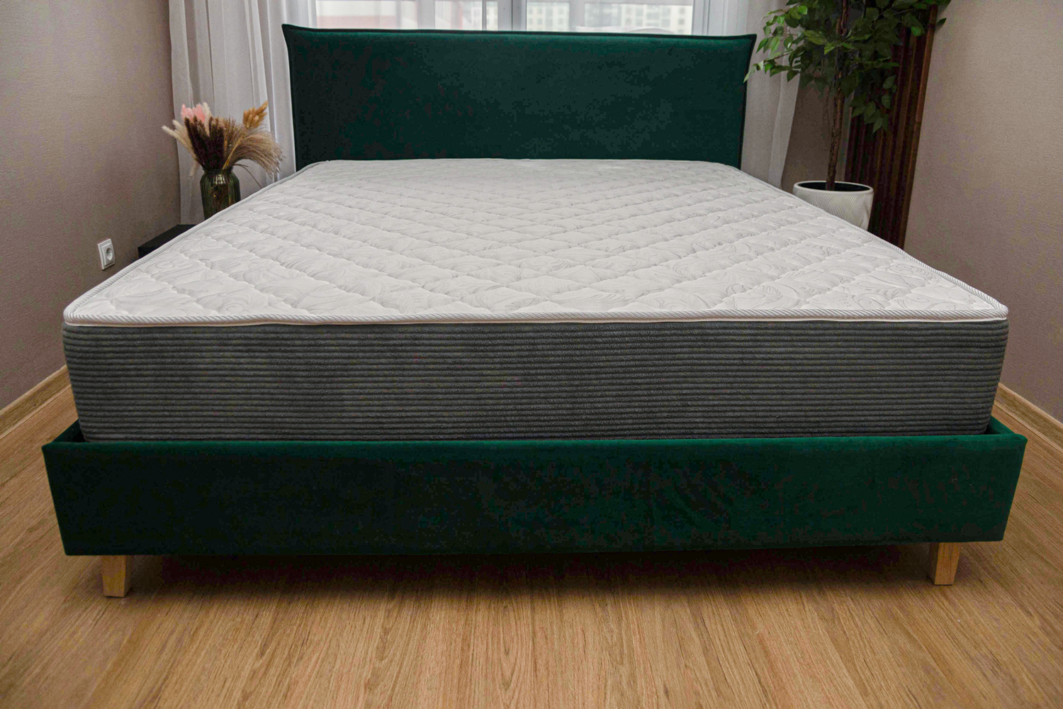 Высокий матрас средней степени жесткости. В его наполнении применяется увеличенный слой упругой пены. Основа матраса - пружинный блок Multi (1000 пружин на спальное место). Такой блок максимально точно распределяет вес, оказывает точечную поддержку и за счет увеличенного количества пружин, выдерживает большие нагрузки. Чехол матраса выполнен из нежнейшего трикотажа, стеганого на объемном волокне.