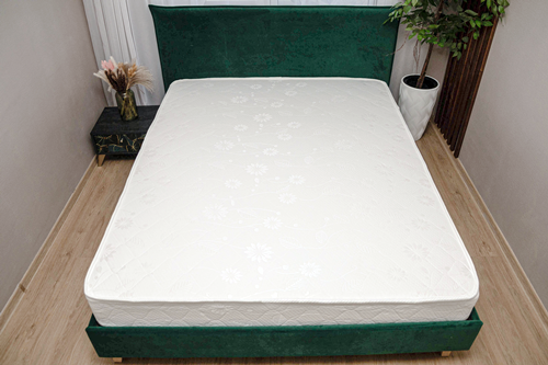 3. Чехол выполнен из нежного трикотажа, стеганого на объемном волокне. Боковая часть матраса изготавливается из мебельного жаккарда, который предотвращает истирание об царги кровати