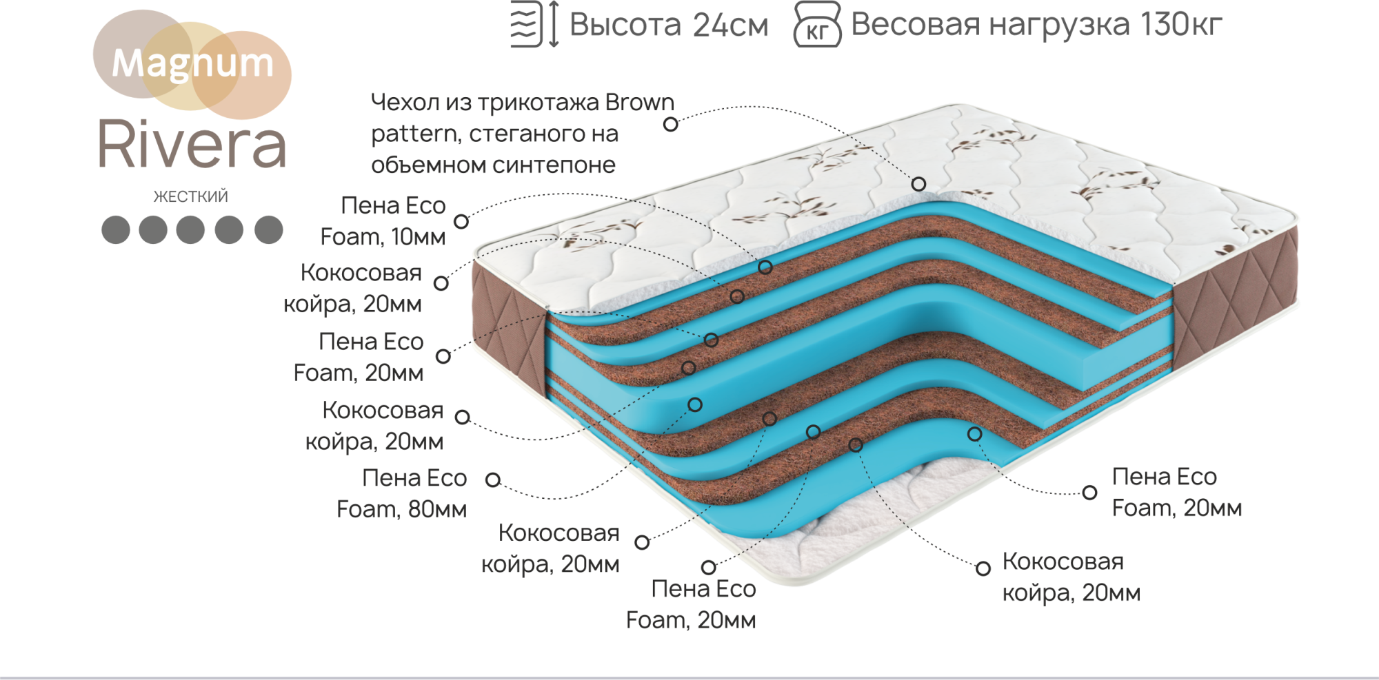 Magnum Rivera - супер-жесткий матрас, на основе чередования слоев кокосовой койры и пены.